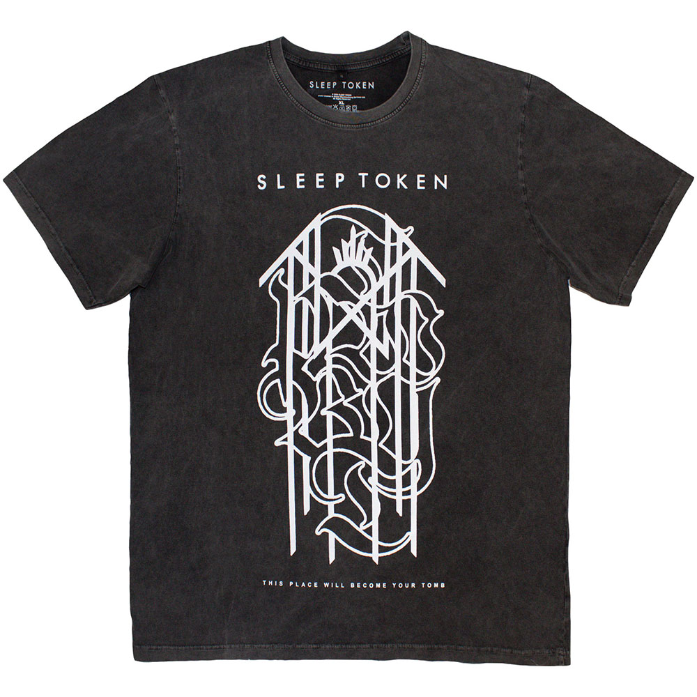 Sleep Token Stone Wash T-shirt Tomb Text Ring (charcoal Grey)