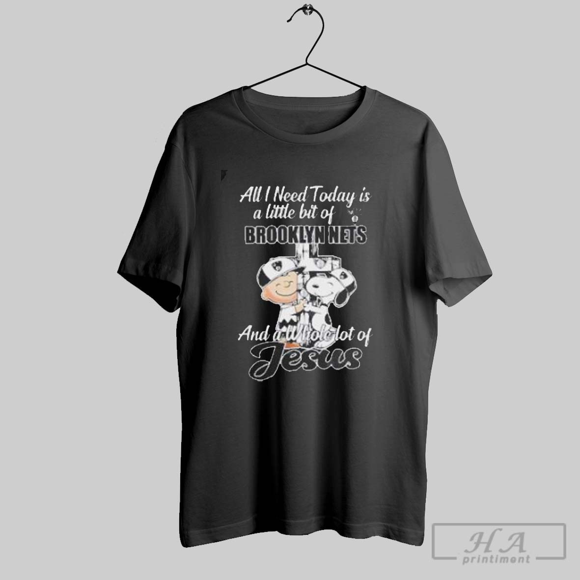 Snoopy And Charlie Brown All I Need Today Is A Little Bit Of Brooklyn Nets And A Whole Lot Of Jesus The Peanuts Shirt