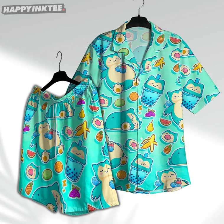 Snorlax Chill Milk Tea Fruit Summer Hawaiian Shirt And Shorts