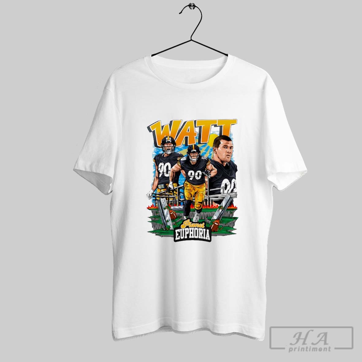 T J Watt 90 Pittsburgh Steelers Flames Comic 2025 T Shirt Sweatshirt
